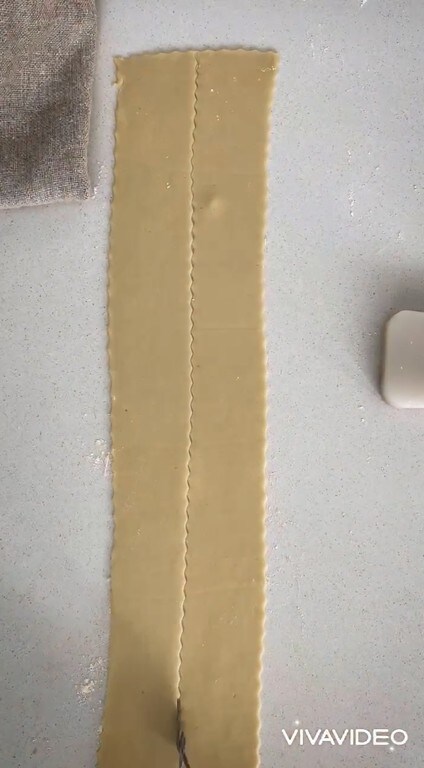 Mit dem gezahnten Rädchen Streifen von etwa 50 cm Länge und 3 cm Breite schneiden
