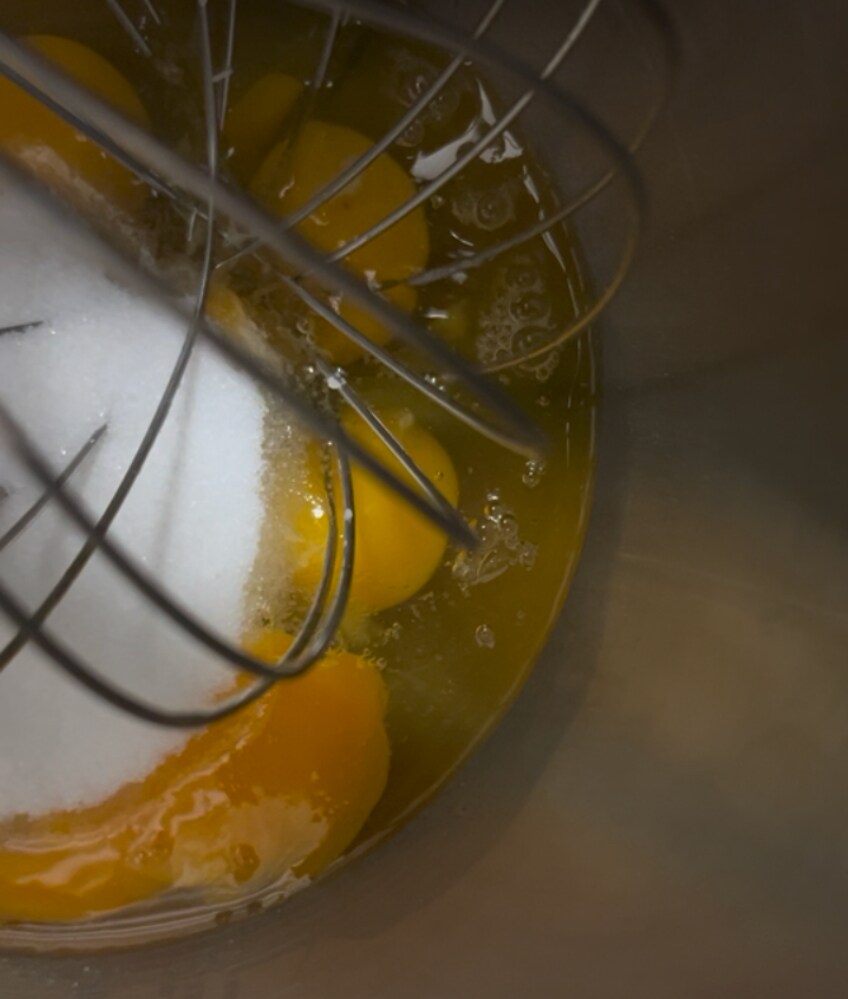 In der Zwischenzeit in einer Schüssel den Zucker mit den Eigelben vermischen