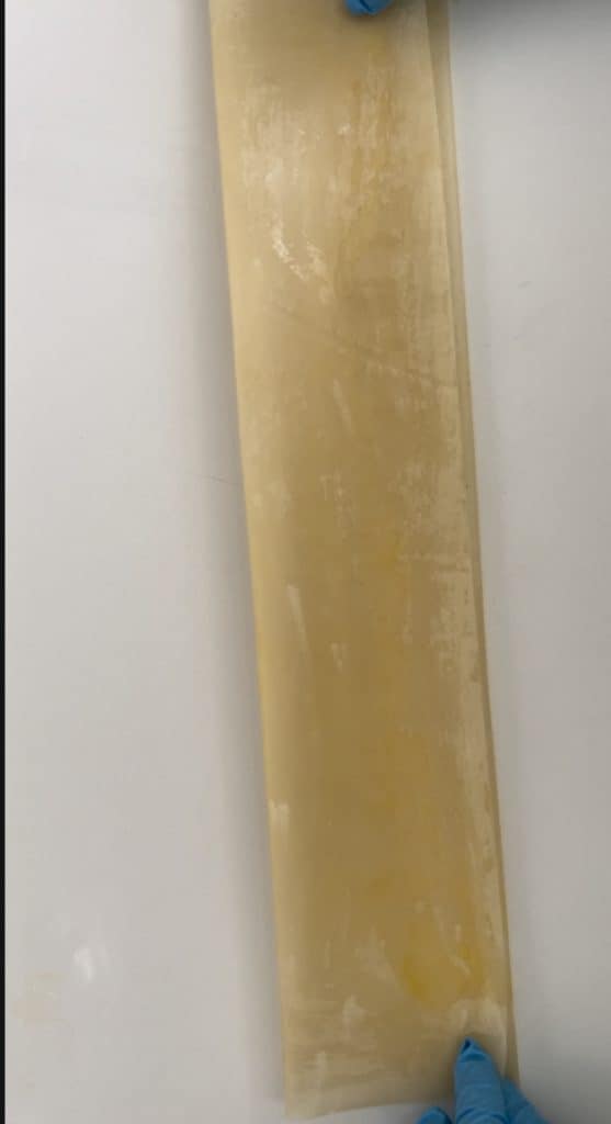 Den Streifen umdrehen und erneut mit geschmolzener Butter bestreichen.