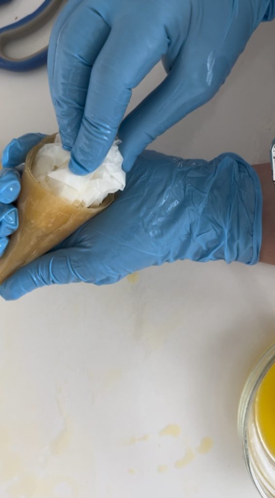 Den Filo-Teig öffnen, um einen Kegel zu formen.