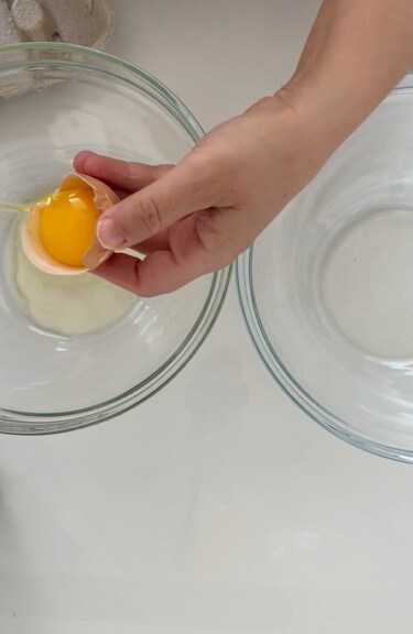 Das Erste, was zu tun ist, die Eigelbe von den Eiweißen zu trennen, die bei Raumtemperatur sein müssen.