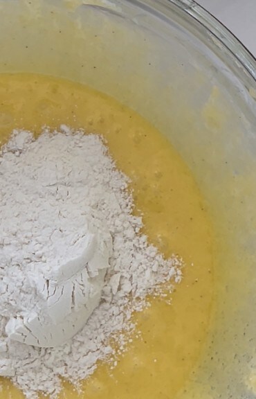 Weiter das Mehl einfügen und die Mischung bearbeiten