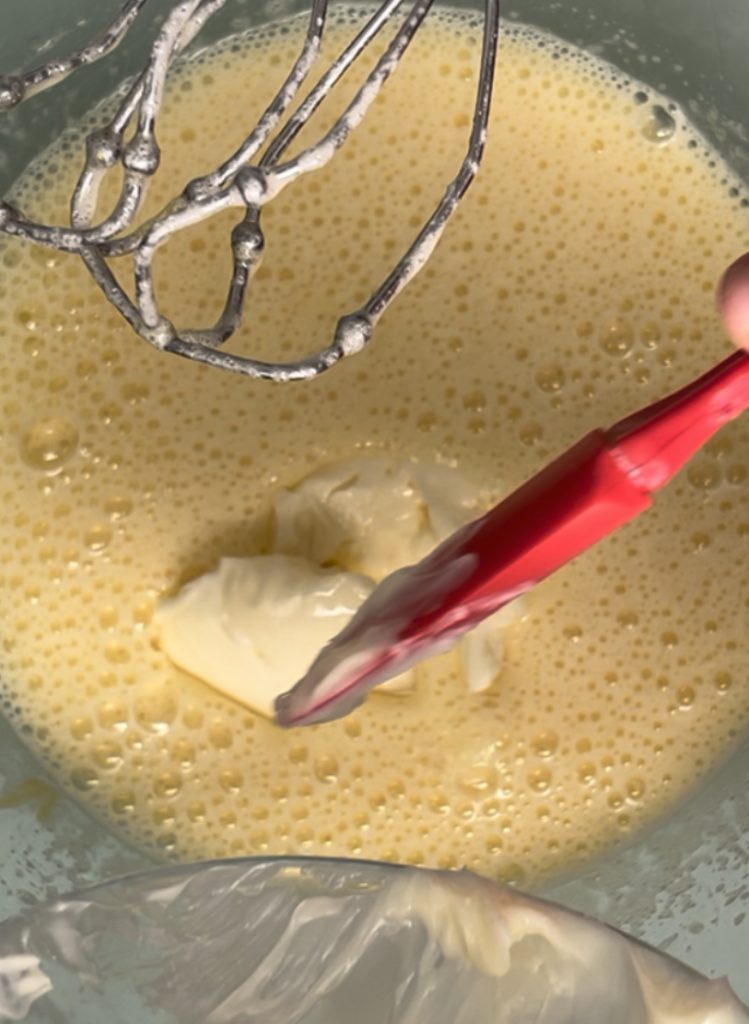 Fügen Sie die weiche Butter hinzu und vermengen Sie diese gut mit den Mixern