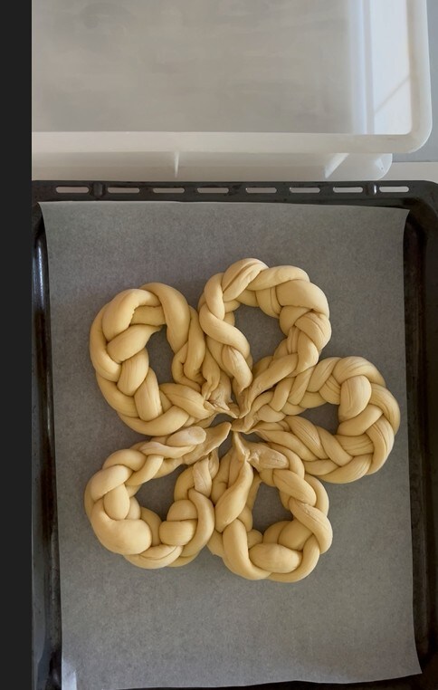 Jede Brioche besteht aus 4 Strängen. Die Enden verbinden