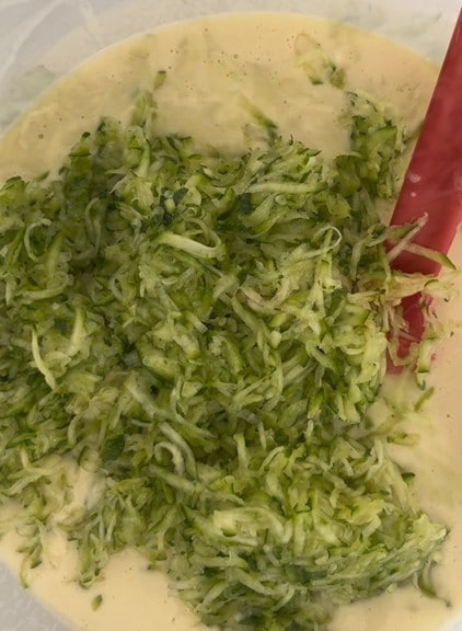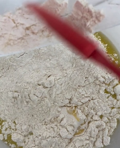Das Mehl hinzufügen und gut vermischen, bis ein homogener Teig entsteht.