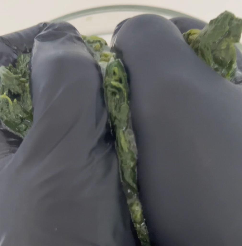Den Spinat gut abseihen und ausdrücken, um die Flüssigkeit zu entfernen.