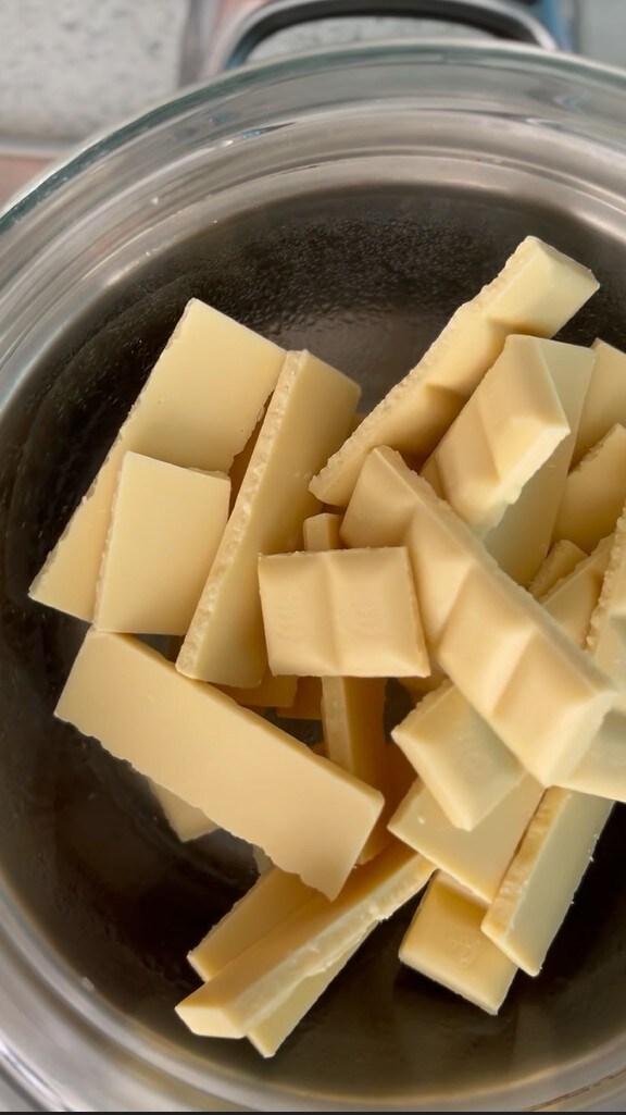 Jetzt die weiße Schokolade im Wasserbad schmelzen