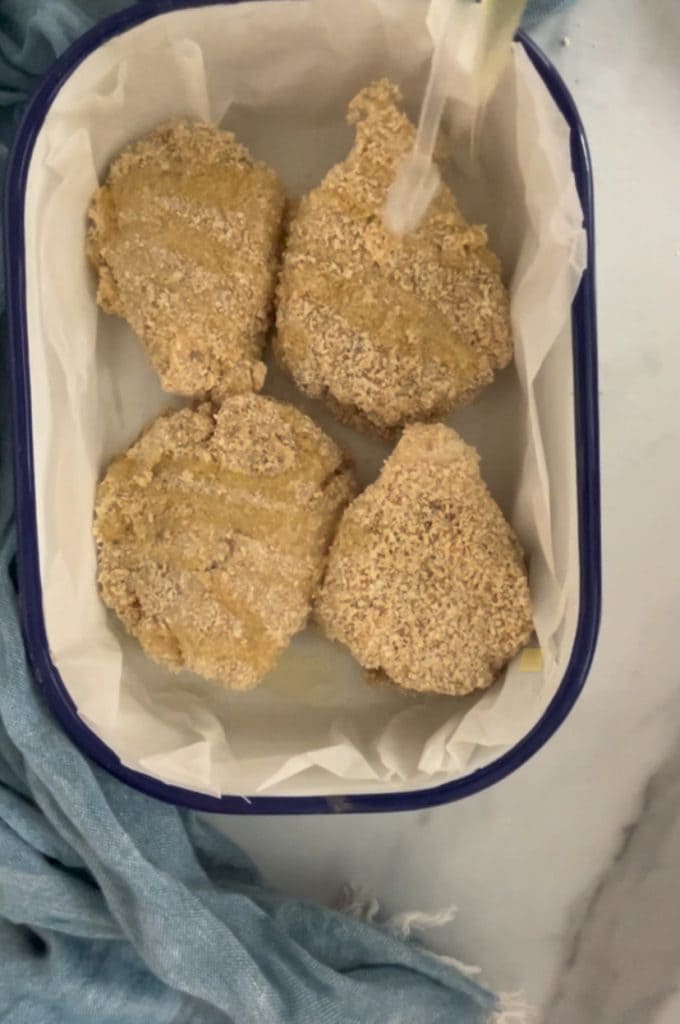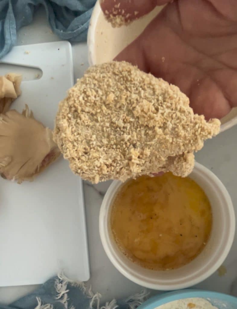 Wenn Sie möchten, können Sie sie zweimal in Ei und Semmelbrösel panieren, d.h. zuerst in Mehl, dann Ei, dann Semmelbrösel und dann wieder Ei und Semmelbrösel.