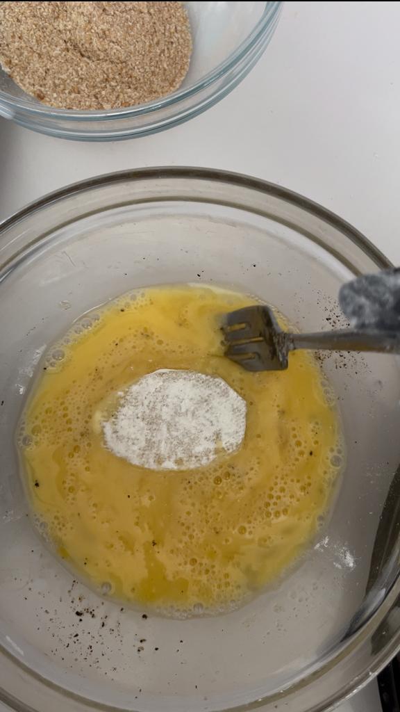 Dann in das geschlagene Ei geben.
