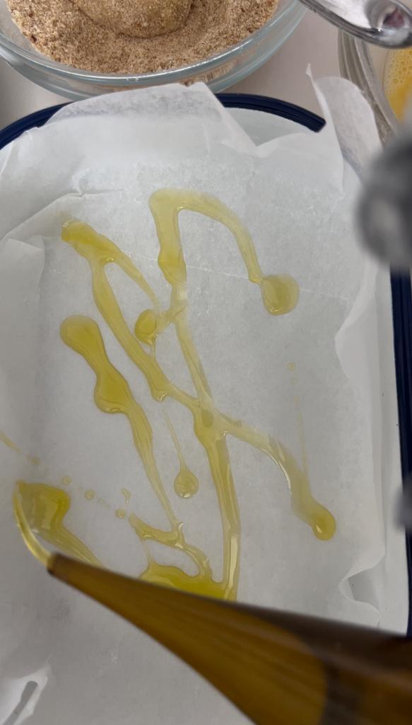 Ein Backblech mit Backpapier auslegen und einen Schuss extra natives Olivenöl darauf verteilen.