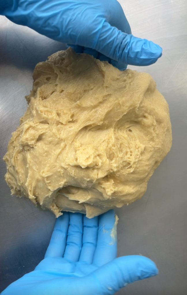 bis ein glatter, homogener und elastischer Teig entsteht. 1 Stunde im Kühlschrank und 1 Stunde bei Raumtemperatur ruhen lassen.