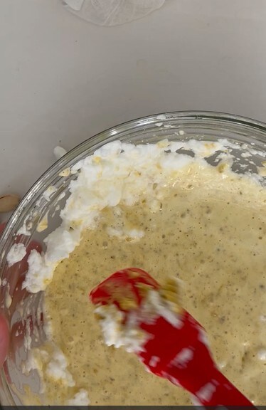 Mit einem elektrischen Handrührgerät arbeiten, bis es leicht schaumig ist.