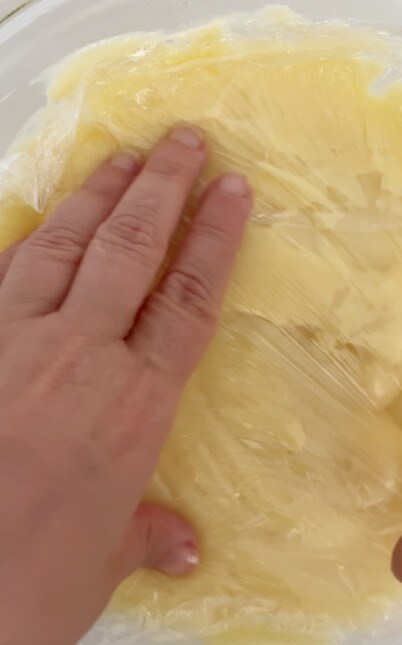 In eine Schüssel geben, mit Frischhaltefolie abdecken und abkühlen lassen