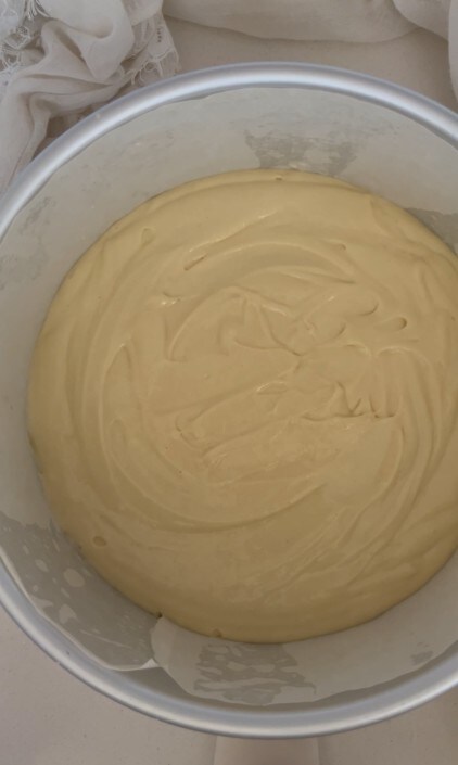 In die mit Backpapier ausgelegte 22 cm Springform gießen