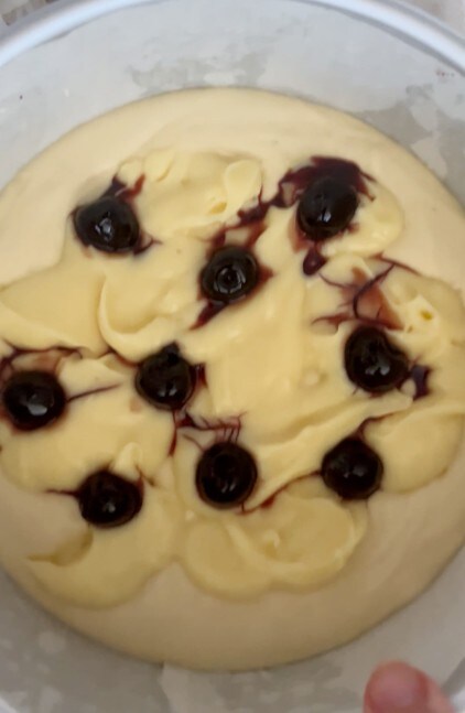 Die Amarenakirschen hinzufügen und im vorgeheizten Ofen bei 180° für 50 Minuten backen