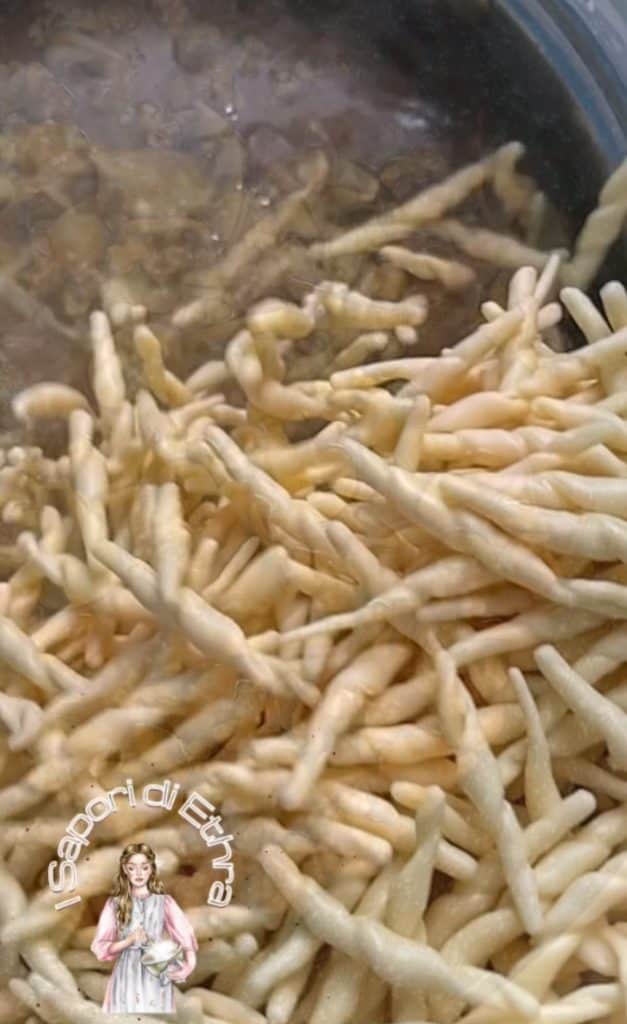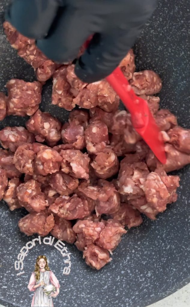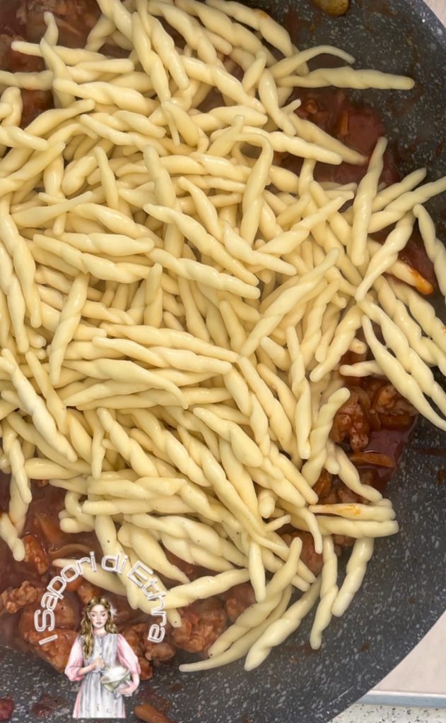 Ein Fest der authentischen Aromen in diesem Nudelgericht mit Wurst und Pilzen. Die einzigartige Konsistenz der Fricelli nimmt eine großzügige Sauce aus frischer, zerbröselter Wurst und Champignons (oder gemischt) auf, alles umhüllt von einer schmackhaften und duftenden Soße. Lassen Sie sich vom intensiven Duft dieses Gerichts aus Fricelli, Wurst und Pilzen verzaubern. Die Nudeln mit ihrer geschwungenen Form fangen eine reichhaltige und umhüllende Soße ein, in der sich die Süße der Wurst mit dem waldigen Aroma der Pilze verbindet, und so eine Geschmacksharmonie schafft, die Sie beim ersten Bissen erobern wird.