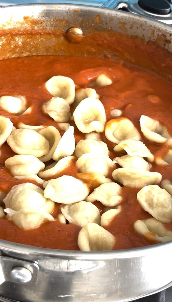 Die Orecchiette abgießen und weitere 6 Minuten in der Sauce weiterkochen