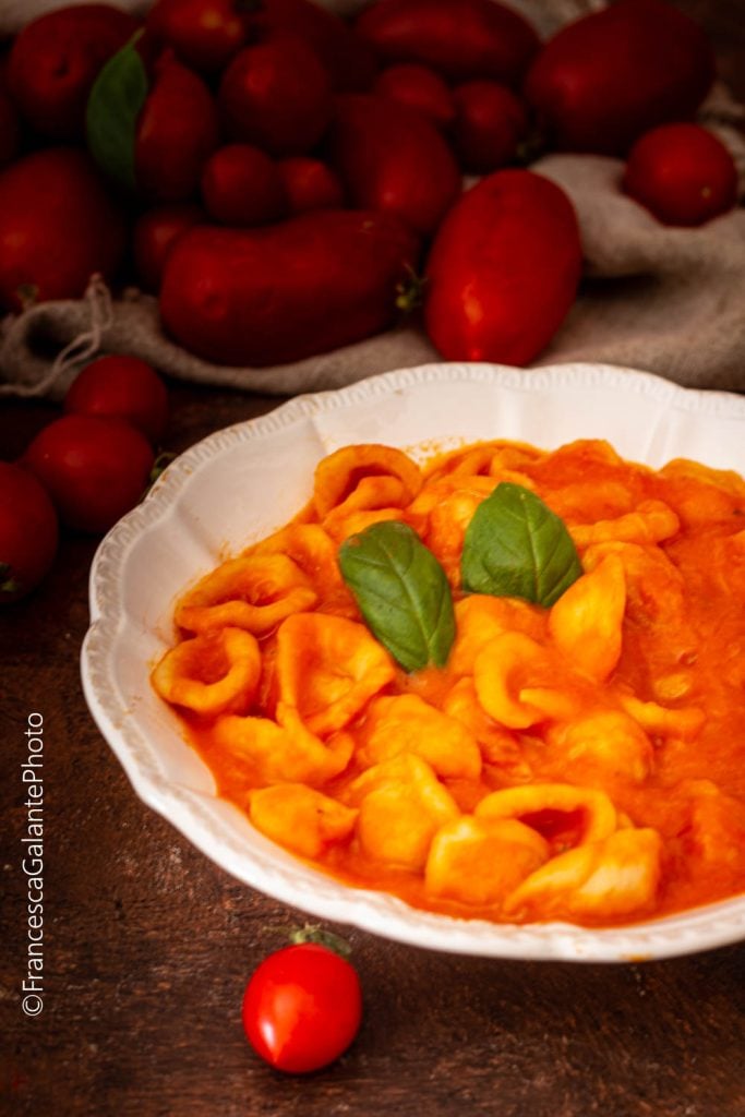 Heute möchte ich ein wirklich unwiderstehliches Hauptgericht mit euch teilen, die ORECCHIETTE MIT DREI TOMATEN. Ein Fest der Tomaten und super stretchiger Fior di Latte. Um dieses Hauptgericht zuzubereiten, habe ich, als echte Apulierin, die legendären frischen, handgemachten Orecchiette bevorzugt, aber wenn ihr wollt, könnt ihr dieses Gericht auch mit jeder anderen Pastasorte genießen. Die Tomatensaison ist im Sommer, und sie können von Mitte Juni bis Ende September geerntet werden!