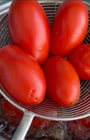 • Als erstes die Tomaten für einige Minuten in kochendem Wasser blanchieren.