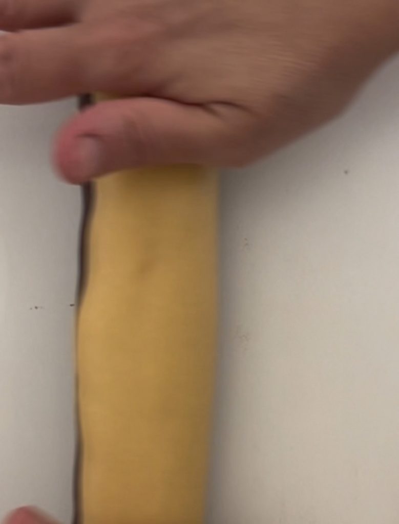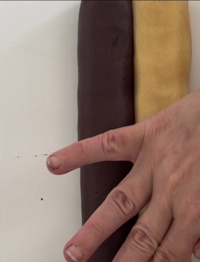 Nun zwei Stränge formen, einen hellen und einen dunklen.