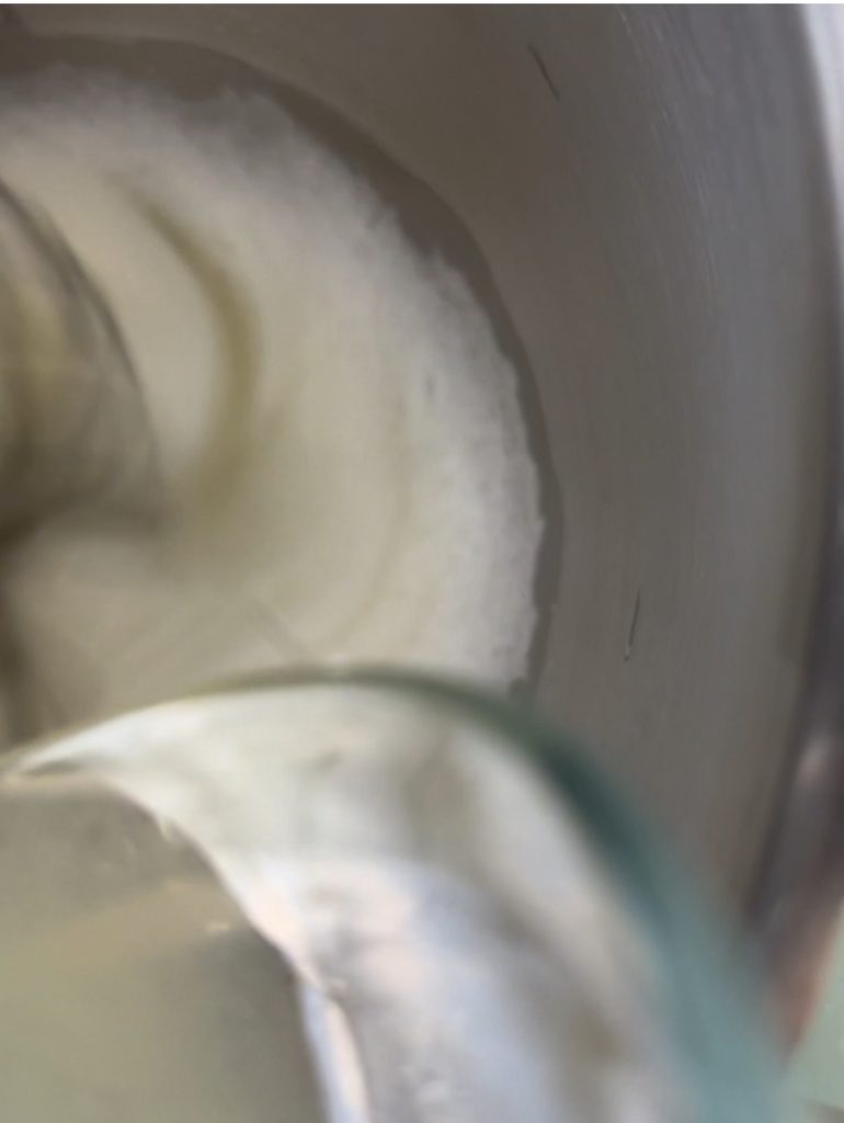 In eine perfekt saubere Küchenmaschine das Eiweiß bei Raumtemperatur geben und bei niedriger Geschwindigkeit arbeiten