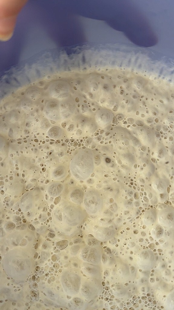 Dies ist die perfekte blasenförmige Konsistenz des Teigs vor dem Frittieren.