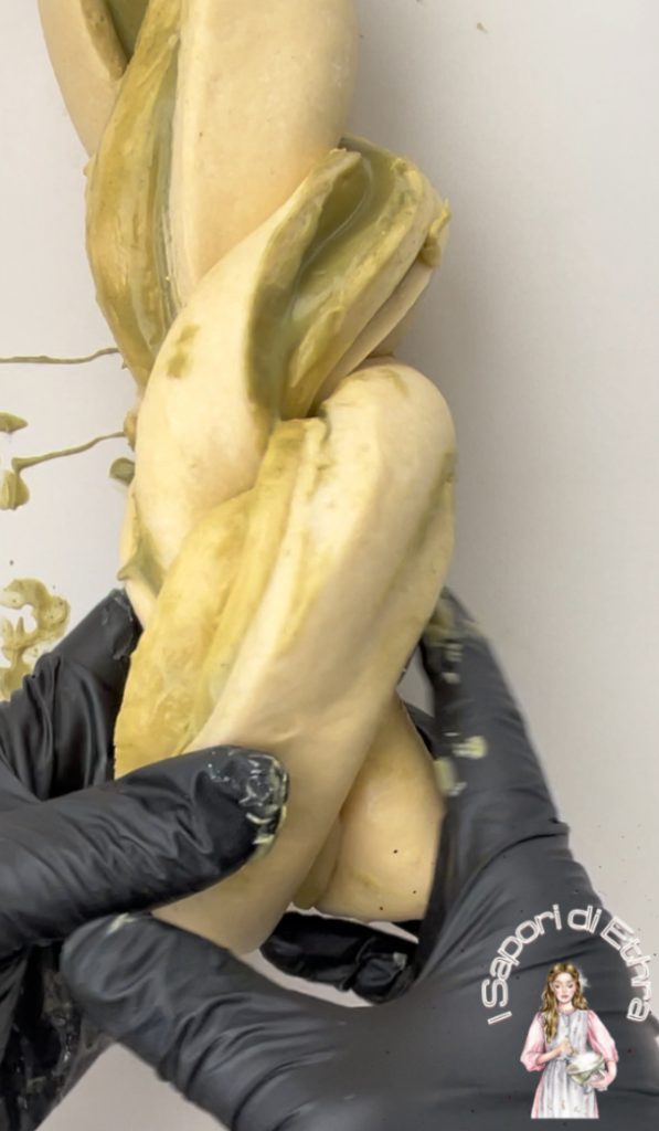 Die Pistazien-Brioche ist eine köstliche und duftende Variante der klassischen Brioche, bereichert durch den intensiven und aromatischen Geschmack von Pistazien. Es handelt sich um eine weiche Zubereitung, ideal zum Frühstück, als Snack oder als Dessert.