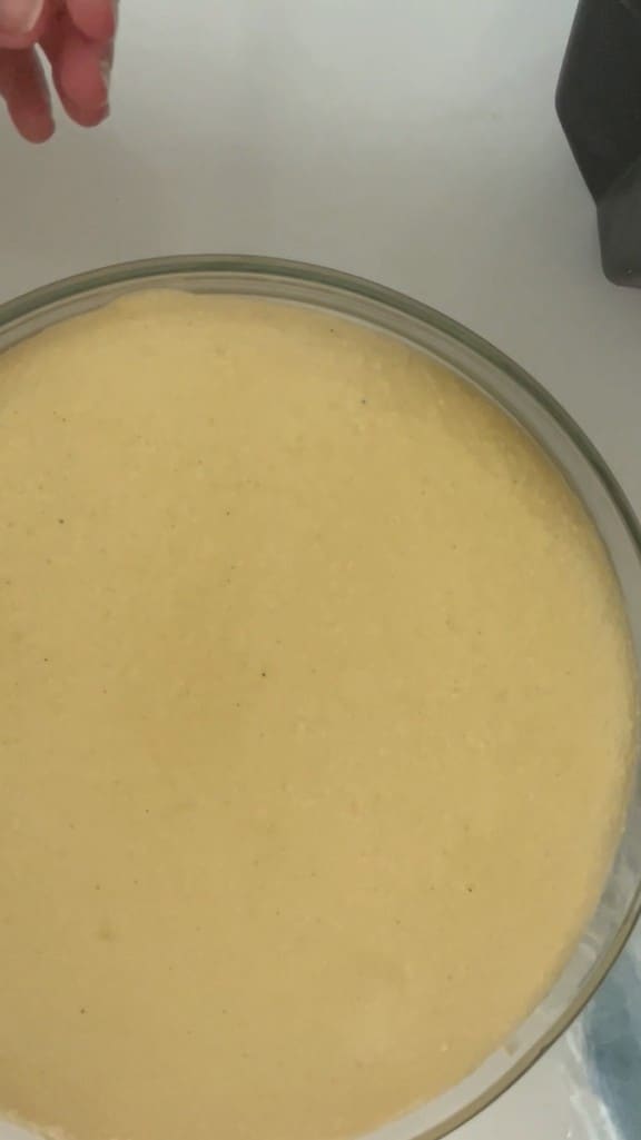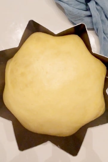 Nehmt eure Form, stellt sie auf eine Waage und nullt das Tara. Dann füllt ihr sie vollständig bis zum Rand mit Wasser und lest ab, wie viele Gramm Wasser in eure Form gepasst haben. Das Ergebnis teilt ihr durch 3 und ihr habt genau die Menge Teig, die in eure Form gehört. Natürlich, wenn der Teig, den ihr gemacht habt, mehr ist, als ihr in die Form geben solltet, nehmt das Überflüssige weg und macht daraus ein kleines Pandoro oder einen Pandoro-Muffin oder was ihr bevorzugt.