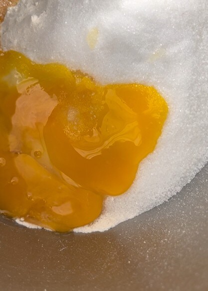 • In der Rührmaschine das Mehl, den Zucker hinzufügen