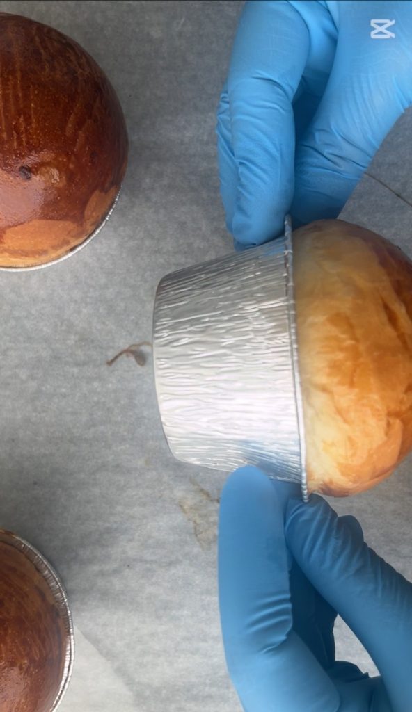 Im statischen Ofen bei 180° für etwa 10 Minuten backen. Vorsichtig aus dem Förmchen lösen