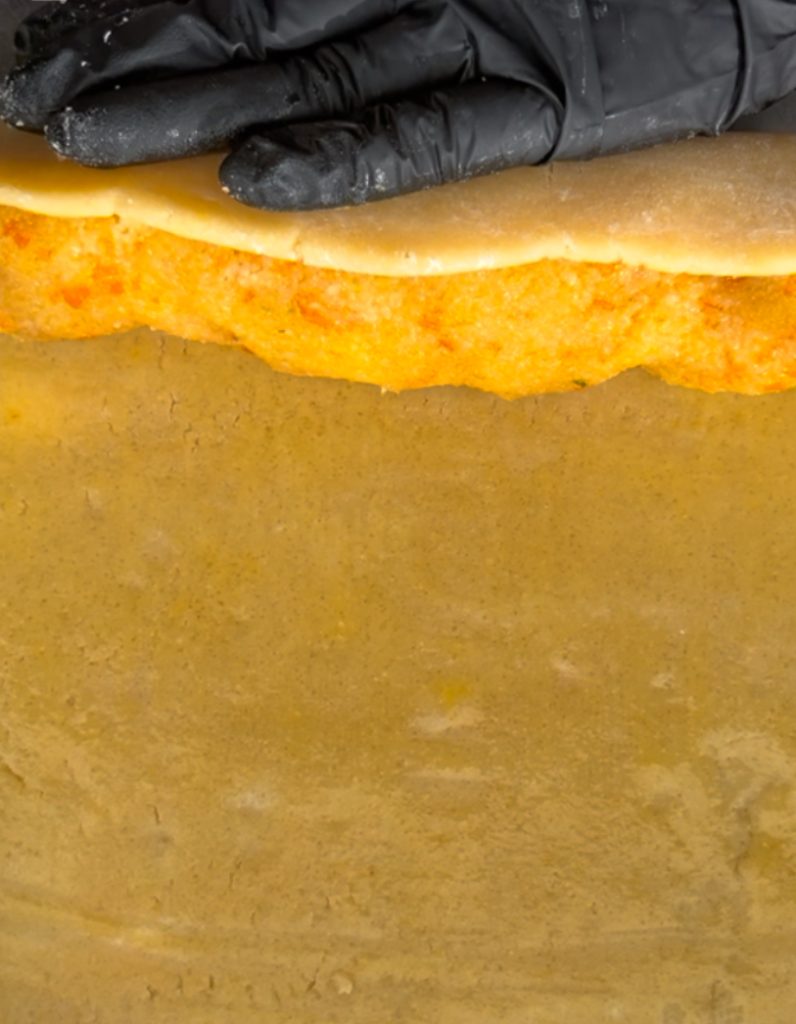 mit dem kalten Mandarinen-Mandel-Teig einen Riegel formen