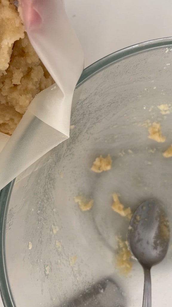 Die Plätzchen im Kühlschrank mit Folie bedeckt für 8 Stunden ruhen lassen. Ich lasse sie die ganze Nacht. Im vorgeheizten traditionellen Ofen bei 180 °C für 10 Minuten backen. Gut abkühlen lassen, bevor man die Plätzchen anfasst und serviert. Im Kühlschrank in Backpapier eingewickelt aufbewahren.