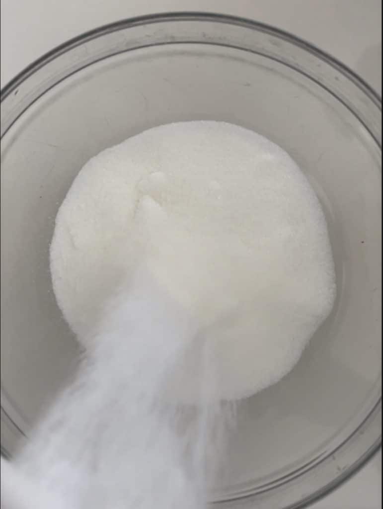 Zucker in eine Schüssel geben