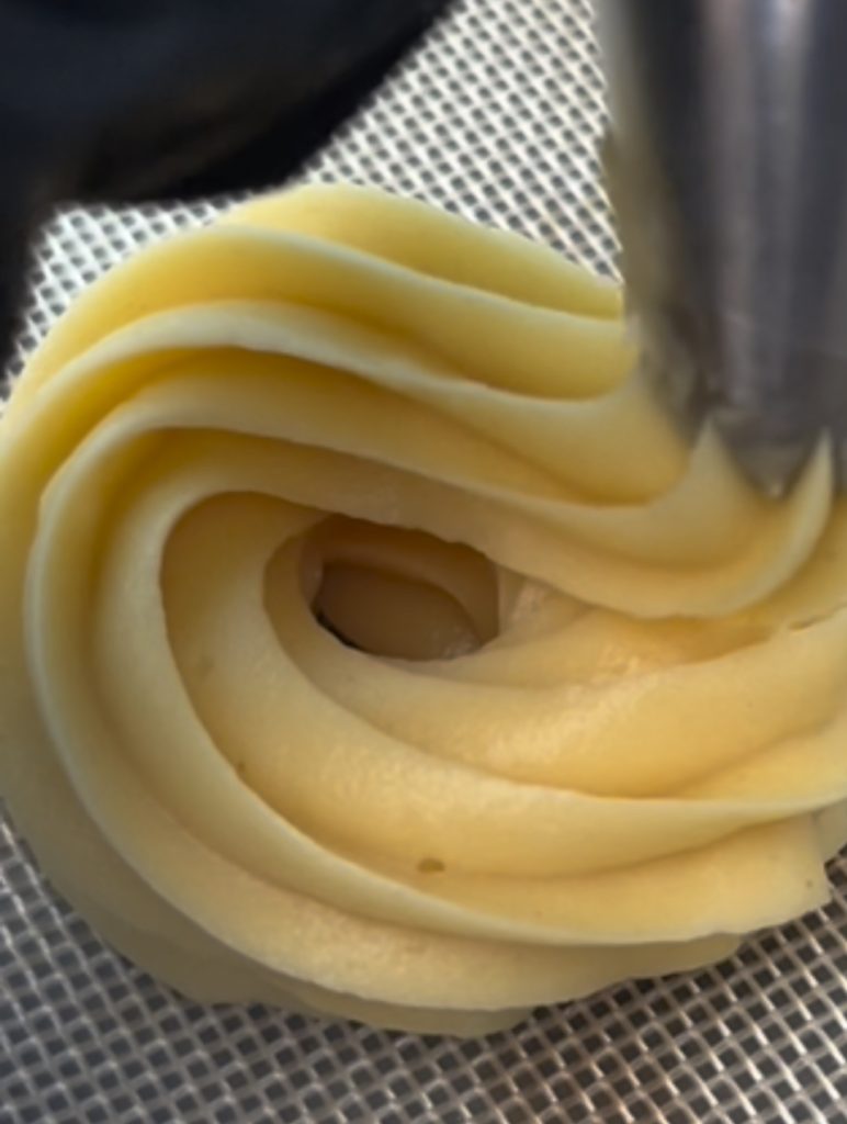 Jetzt einen Spritzbeutel mit Sterntülle vorbereiten und den Brandteig einfüllen