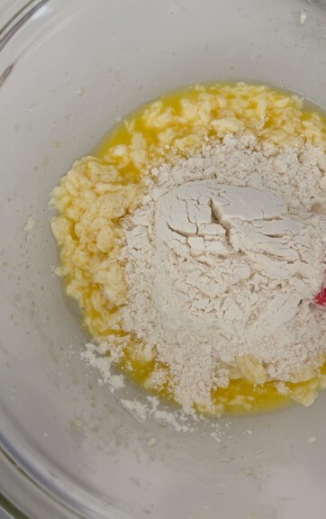 • Zu diesem Zeitpunkt das Mehl mit dem Backpulver hinzufügen.