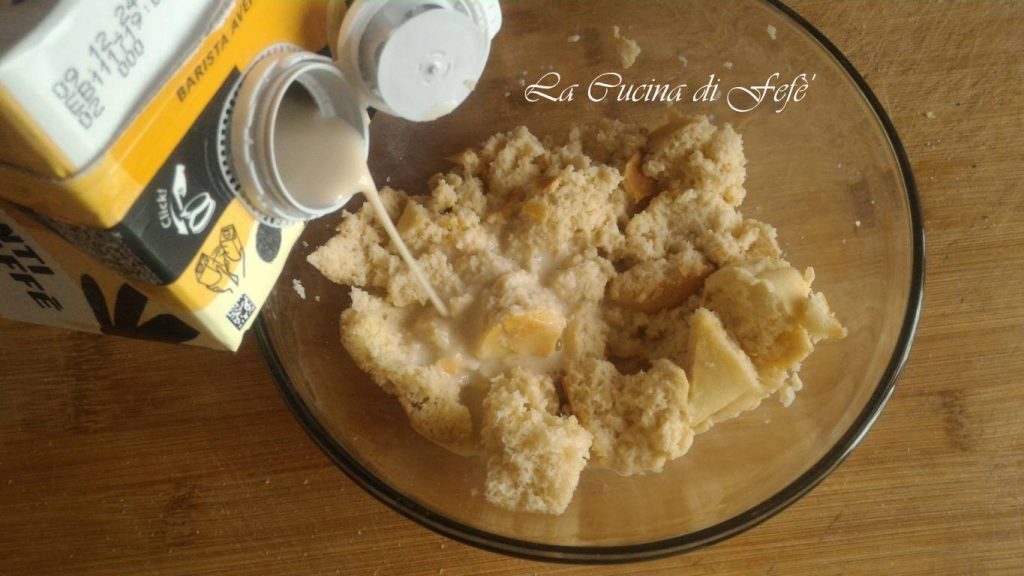 • Schneidet das Brot in Würfel und entfernt die Kruste, gebt es in eine Schüssel und gießt so viel Milch darüber, bis es weich wird. Sobald es weich ist, nehmt es mit den Händen heraus und drückt es gut aus.