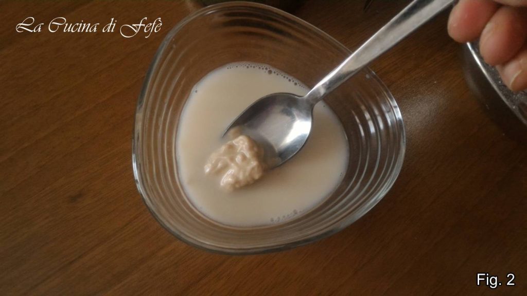 • In der Zwischenzeit die Milch 1 Minute erwärmen und dann die Hefe in 30 ml, die vom Gesamtvolumen abgenommen werden, auflösen.