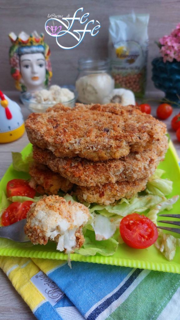 Die Ernährung zu variieren, ist eine gute Möglichkeit, die Vorteile der Lebensmittel, die wir auf den Tisch bringen, voll zu genießen. Ich liebe es, meiner Fantasie freien Lauf zu lassen, und wenn es etwas gibt, das ich gerne mache, dann ist es, mit Gemüsesorten zu überraschen, die in der allgemeinen Vorstellung wenig geschätzt oder unterschätzt werden! Das gilt für den Blumenkohl, insbesondere die weiße Sorte, die einen sehr neutralen, fast faden Geschmack hat, sodass ich vor Jahren eine alternative falsche Béchamel zur traditionellen Version kreiert habe, die zu allem passt, gerade wegen ihres zarten Geschmacks! Heute schlage ich Ihnen jedoch Blumenkohl in einer anderen Form vor, die Schnitzel aus Hähnchenfleisch ähnelt, aber viel gesünder und bekömmlicher ist! Die Zubereitung ist wirklich einfach und auch ziemlich schnell, Sie müssen nur den Blumenkohl in Scheiben schneiden, einen veganen Teig aus Wasser und Kichererbsenmehl herstellen, jede Scheibe in diesen Teig tauchen und dann in einer Mischung aus Paniermehl und geriebenem Parmesan wälzen und ab in den Ofen! Ein einfaches Rezept, das perfekt für alle ist, die aus gesundheitlichen Gründen oder aufgrund ihrer Ernährung keine Eier verwenden können oder eine kalorienbewusstere und faserreiche Ernährung anstreben, voll mit Vitamine und Mineralstoffen. Sie können diese Blumenkohl-Schnitzel als vegetarische Hauptspeise servieren, begleitet von einem frischen saisonalen Salat, genau wie Sie es mit den klassischen Hähnchenschnitzeln tun würden. Außerdem sind sie im Ofen gebacken, aber Sie können sie auch in der Heißluftfritteuse zubereiten, was sie noch leichter und bekömmlicher macht.