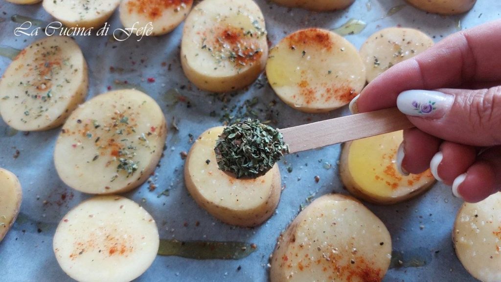 Stelle es in den vorgeheizten Ofen bei 190°C für 25 Minuten, dann wende die Scheiben mit einer Gabel und backe sie weitere 10 Minuten oder bis zur vollständigen Bräunung.