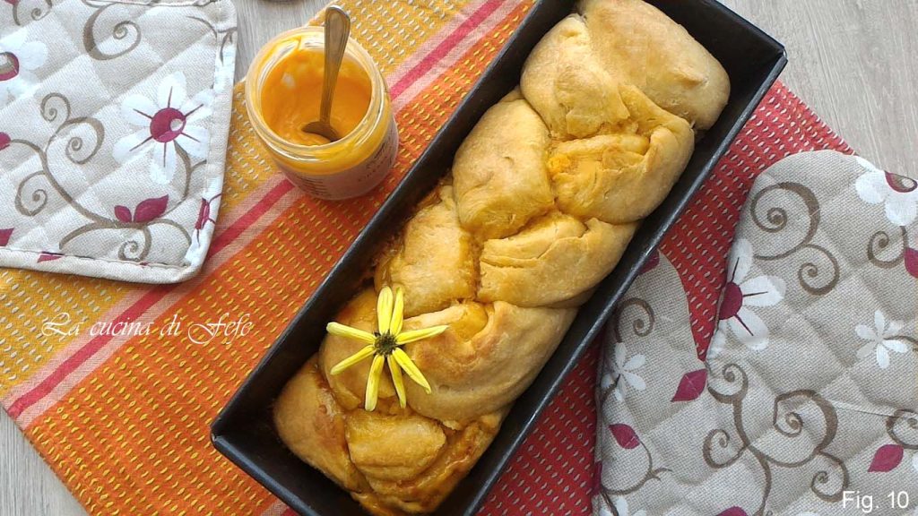 Im vorgeheizten Backofen bei 180°C etwa 30 Minuten backen, dann nur die Oberfläche weitere 5 Minuten bräunen. Ausschalten, aus dem Ofen nehmen und abkühlen lassen (Abb. 10).