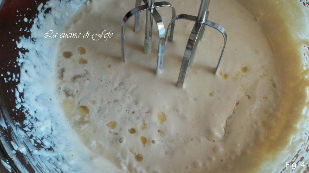 In einer großen Schüssel den Mascarpone mit dem Zucker mit den elektrischen Schneebesen für ein paar Minuten schlagen (Abb. 1).