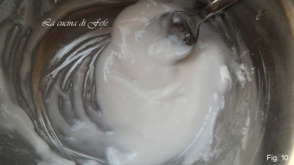 In der Zwischenzeit die Glasur zubereiten, indem der gesiebte Puderzucker mit Zitronensaft verarbeitet wird. Ich empfehle immer, ein paar Tropfen auf einmal hinzuzufügen, bis die gewünschte Konsistenz erreicht ist (Abb. 10).
