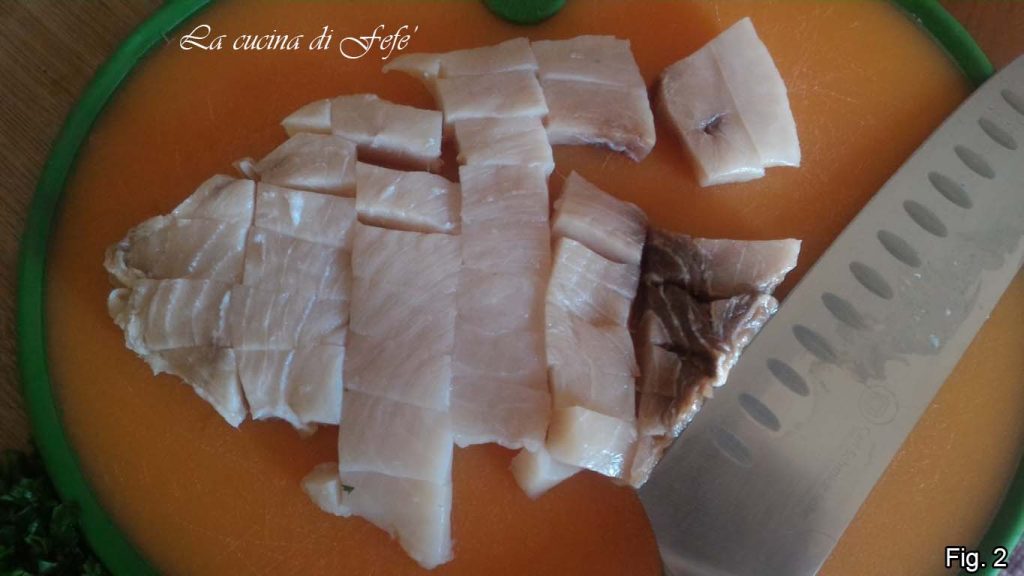 In der Zwischenzeit die Erdbeeren waschen, den Strunk entfernen. Halbiert sie und gebt sie erst 2 Minuten bevor ihr die Pfanne vom Herd nehmt zur Schwertfischsauce, damit ihr Aroma erhalten bleibt und sie sich nicht in „Marmelade“ verwandeln.