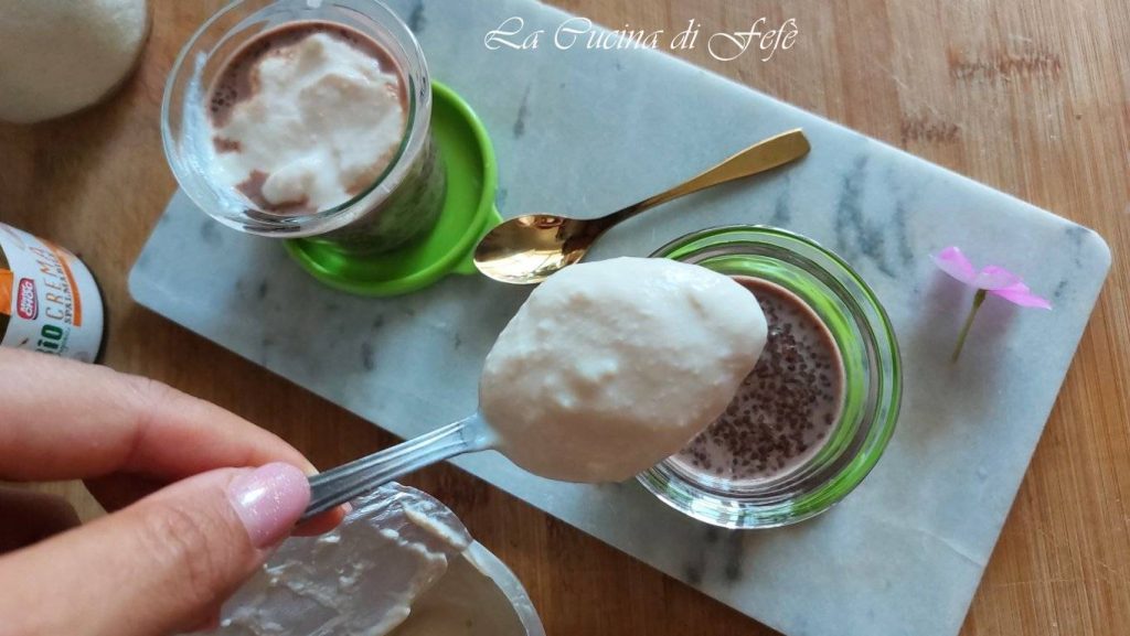 Von fitten Frühstücken, die ich in letzter Zeit ausprobiert habe, muss ich zugeben, dass mich einige mehr begeistert haben als andere, aber dieses mit Kokos und Karamell ist zu einem meiner absoluten Favoriten geworden! Die Basis besteht natürlich aus der gewohnten Mischung aus pflanzlicher Milch und Chiasamen! Diese wertvollen Samen wirken in Kontakt mit einer beliebigen Flüssigkeit wie kleine Schwämme, die sich ausdehnen und ein natürliches Gel mit einer beruhigenden Wirkung auf die Darmwände bilden, was ein größeres Sättigungsgefühl und eine geringere Kalorienaufnahme zur Folge hat! Wenn man den Löffel eintaucht, kann man die erste Schicht aus Karamell genießen, die süß ist und gleichzeitig eine frische Note durch den Kokos erhält! Diese Süße wird nach und nach durch den sauren weißen Joghurt und die bittere Kakao-Chia-Schicht ausgeglichen! Eine wirklich überraschende Kombination! Außerdem ist es glutenfrei und in wenigen Minuten zubereitet, danach einfach in den Kühlschrank stellen und am nächsten Tag genießen! Perfekt auch als leckere und leichte Zwischenmahlzeit oder als frisches und cremiges Dessert im Glas nach dem Mittagessen!