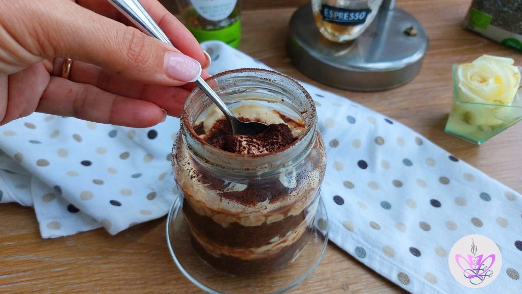 Und voilà… der Chia Pudding Tiramisù ist fertig! Löffle dich durch die Schichten und genieße es!