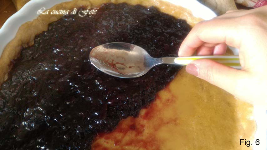 • Oder, wenn ihr mögt, den Teig in viele Streifen schneiden, um die Tarte klassisch zu dekorieren. Die Tarte im Backofen bei 180°C Ober-/Unterhitze für 35 Minuten backen. Ausschalten, herausnehmen und vollständig abkühlen lassen.