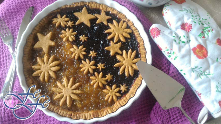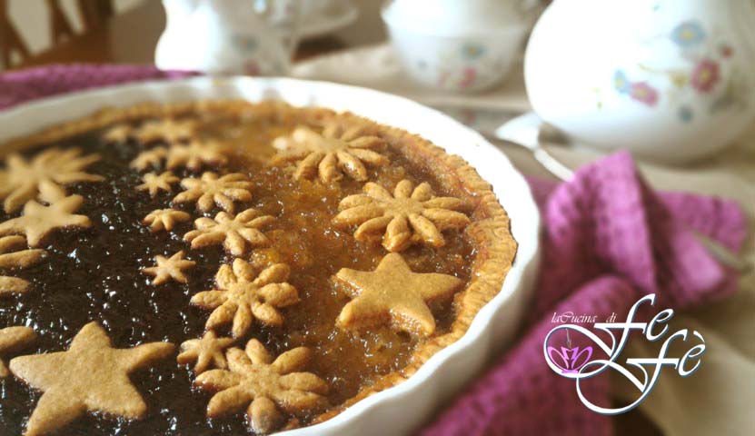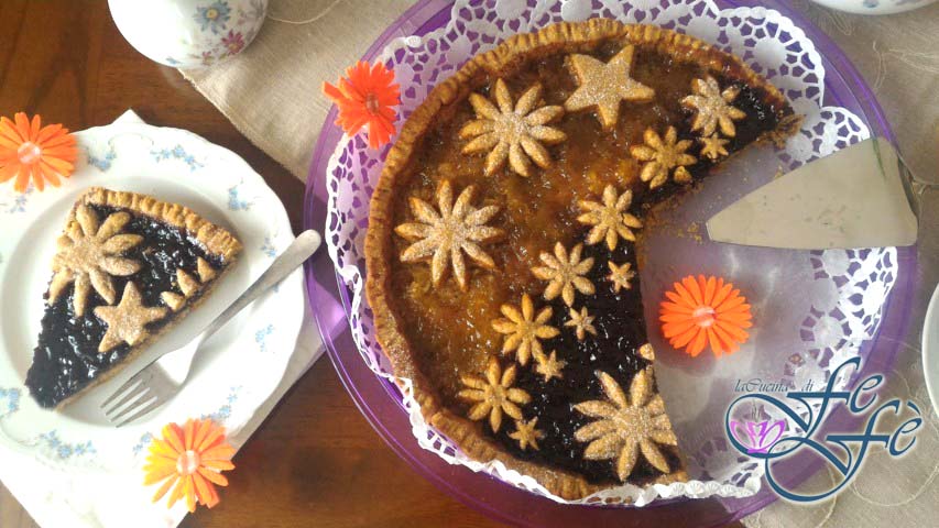 Wenn es etwas gibt, das ich beim Zubereiten eines Mürbeteigs gelernt habe, dann dass man normalerweise vor allem reichlich und sehr kalte Butter braucht. Dennoch habe ich entdeckt, dass man auch ohne Butter eine ausgezeichnete und optimal knusprige Grundlage für Tartes erzielen kann – so gut, dass sie von nun an ein Muss in meiner Küche ist! Einfach die Butter durch Pflanzenöl ersetzen: davon braucht man zudem sehr wenig, und fertig ist das Ergebnis! Außerdem keine Ruhezeit im Kühlschrank, das macht den Teig schneller und praktischer. Ihr werdet immer perfekte und gesunde Kuchen für Frühstück und alle Gelegenheiten backen! Zu dieser Entscheidung habe ich auch ein weniger raffiniertes Mehl kombiniert: Dinkel-Vollkorn, das im Geschmack rustikaler wirkt, aber meiner Meinung nach über die Natürlichkeit hinaus auch in der Backleistung viele Vorteile bietet. Außerdem kein Triebmittel – es reicht, dem Teig einen Teelöffel Natron hinzuzufügen. Für die Füllung wollte ich stark mit Kontrasten von Geschmack und Farbe spielen und die Basis mit zwei sehr unterschiedlichen Konfitüren belegen: die Süße von Birne & Zimt und die Säure von Kirschen & Sternanis! Ein echtes Gedicht!
