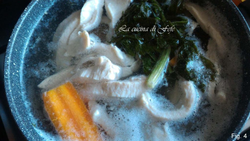 Kochen Sie sie in Salzwasser mit dem Sellerie, den Karotten und der Zwiebel für maximal 3 Minuten.