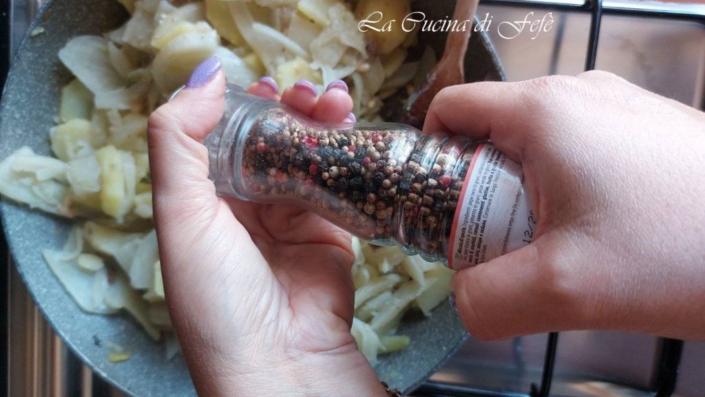 Sobald das Gemüse zart geworden ist, abschmecken mit Salz, eine gute Prise Pfeffer und ausschalten.