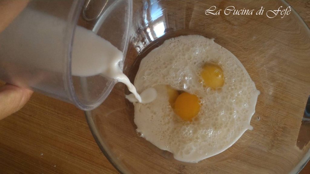 Gießen Sie auch die pflanzliche Milch ein und arbeiten Sie mit einem Schneebesen.